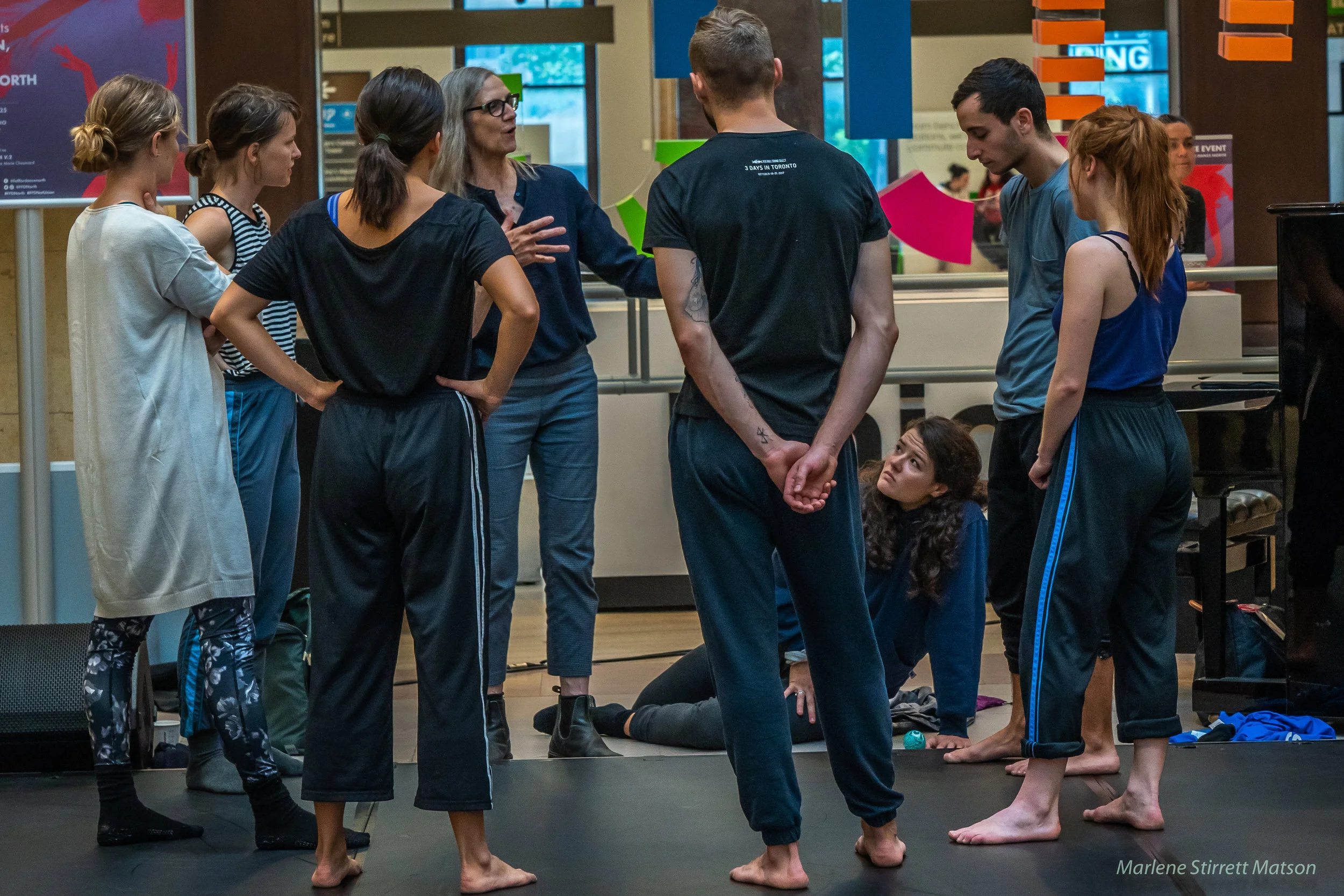 Peggy giving feedback to the RBC Emerging Artists. L to R kate holden, sarah fregeau, sierra, peggy baker, jarrett siddall, kathleen, micha, jessica